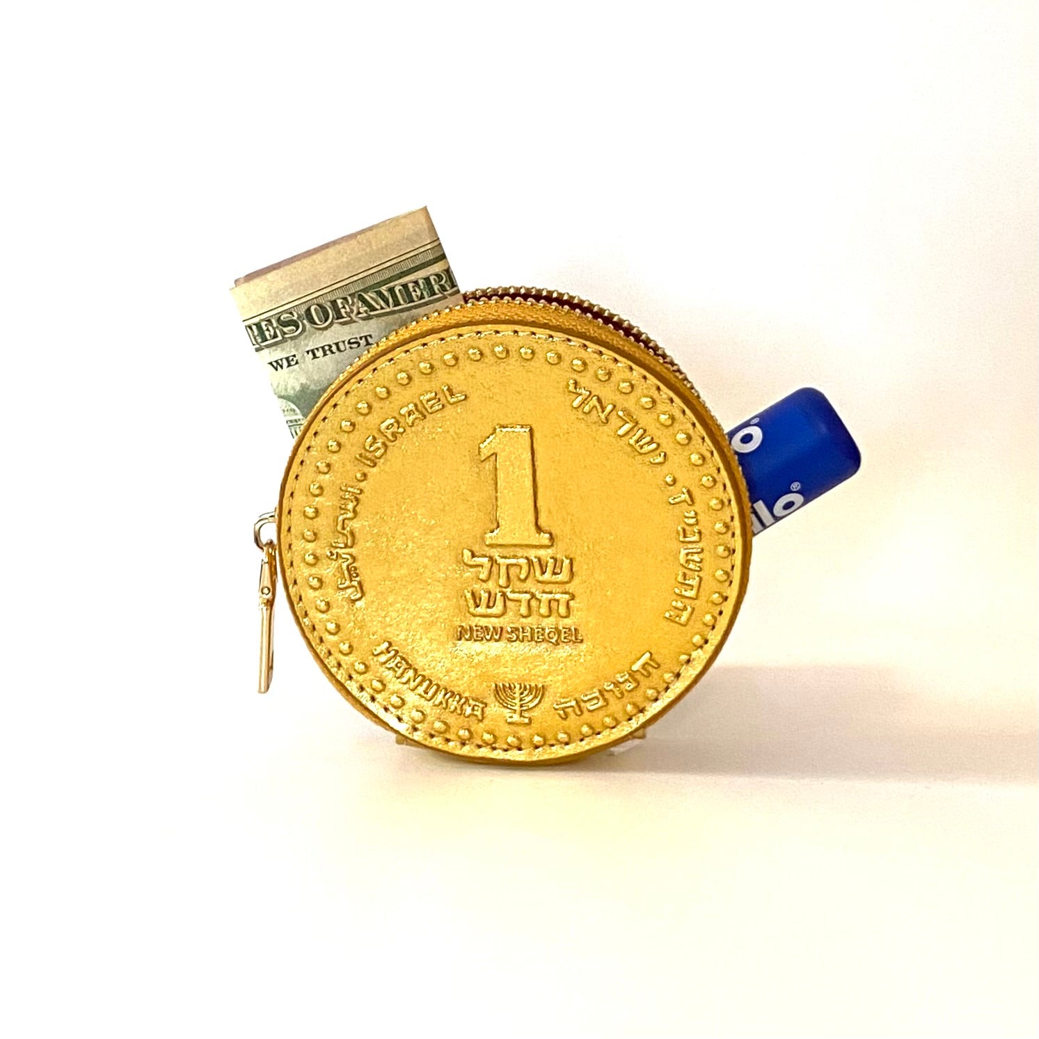 Crafted from vegan leather and designed to resemble Hanukkah gelt, this gleaming coin pouch adds a bold, festive touch wherever you go. Clip it to your bag or belt loop and fill it with coins, candy, or small essentials for the perfect blend of holiday flair and everyday function.